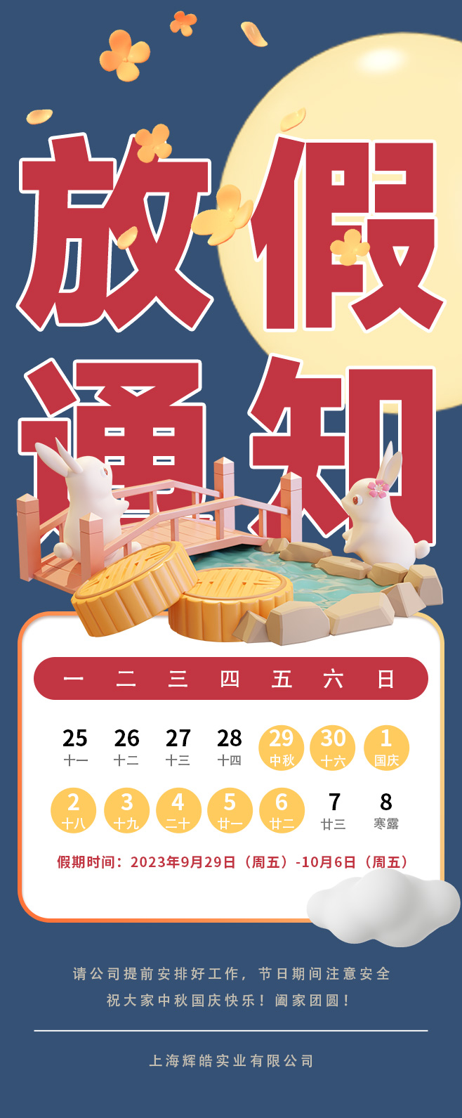 中秋~国庆长假将至,我司工作安排如下: